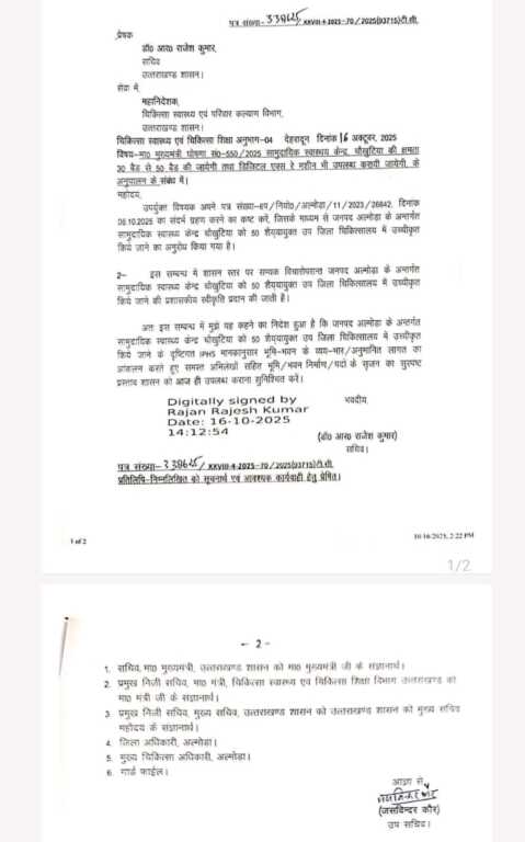 बड़ी खबर : चौखुटिया सरकारी अस्पताल का उच्चीकरण आदेश हुआ शासनादेश जारी… दो विशेषज्ञ चिकित्सकों की भी तैनाती