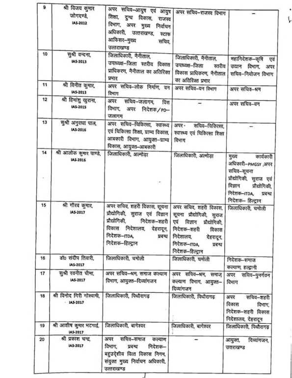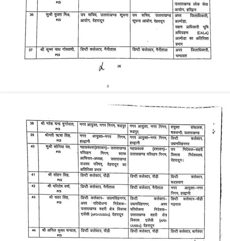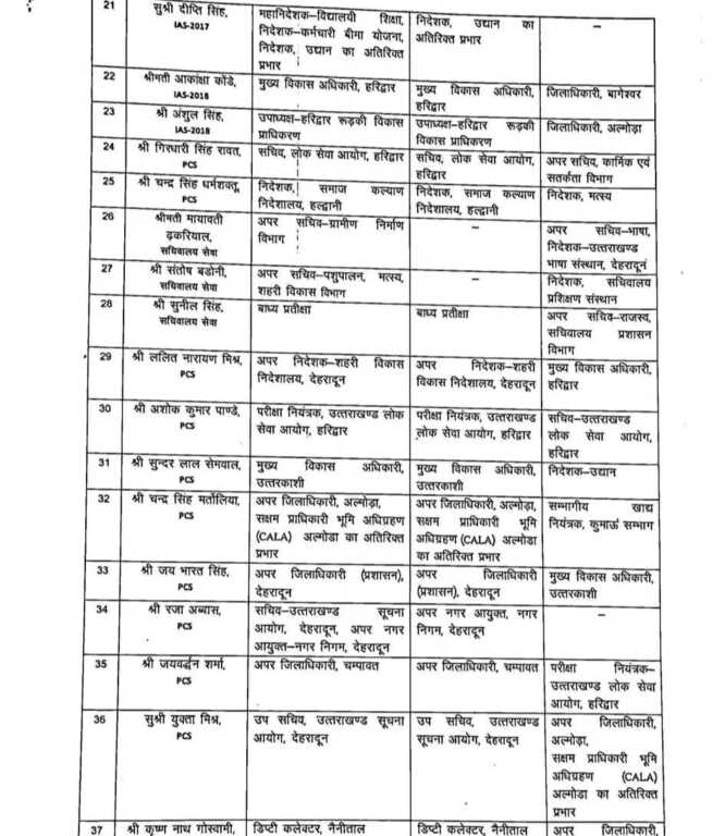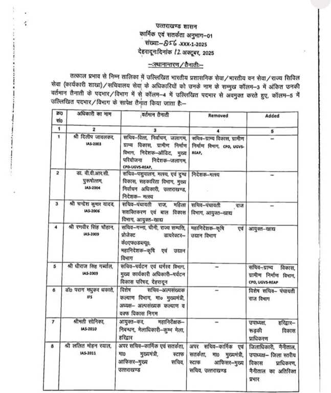 रयाल नैनीताल, गौरव चमोली, अंशुल अल्मोड़ा, आकांक्षा बागेश्वर, भटगाई पिथौरागढ़ के डीएम बने, उत्तराखंड में बड़ा प्रशासनिक फेरबदल: शासन ने 44 अफसर बदले