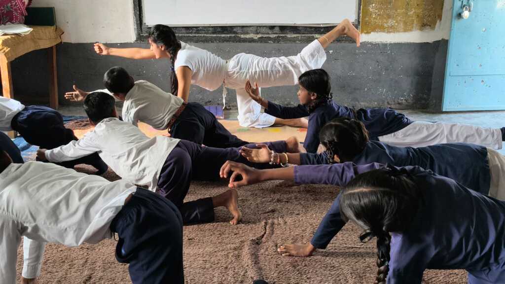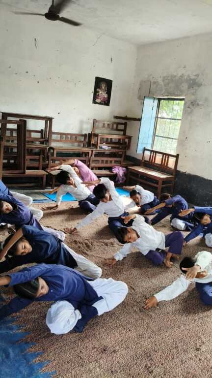 जन स्वास्थ्य सेवा समिति की निदेशक कनिष्क कुनियाल ने सूक्ष्म व्यायाम आरंभ करते हुए सूर्य नमस्कार, भूमि नमन आसन, धनुरआसन, चक्रासन के अलावा शीर्षासन एवं प्राणायाम करवाया। उन्होंने प्राणायाम के महत्व के बारे में वहां के बच्चों को जानकारी दी। इस इस कार्यक्रम में लगभग 20 से 25 आयुर्वेदिक पौधे लगाए गए जिनमें हरण, नीम ,जामुन , आवाला जैसे औषधि पौधे लगाए ।